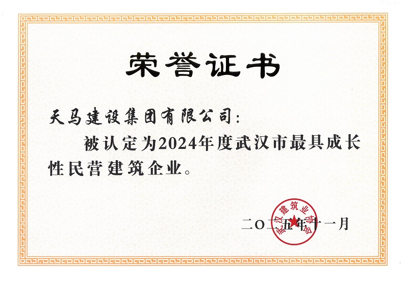 近期,天馬建設(shè)榮獲2023-2024年度武漢建筑AAA級(jí)信用企業(yè)和2024年度武漢市最具成長(zhǎng)性企業(yè)。